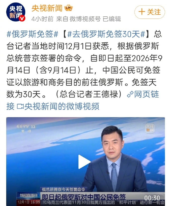 俄罗斯从今天起对中国公民实施免签入境30天,这是个好消息。